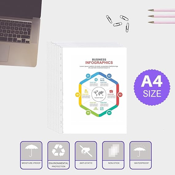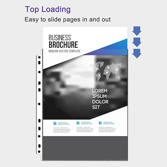 - CONVENIENT DESIGN: The top loading design make it easy to slide paper in and out. Sheet protectors with 11 holes will keep papers safe in the most ring binders, paper binders, folders or other office products.