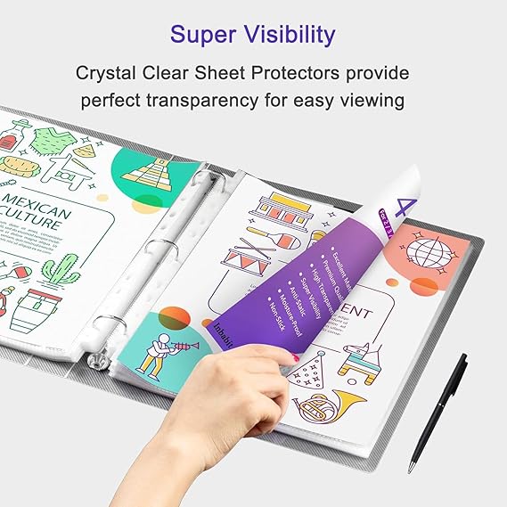 - PERFECT VISIBILITY: Clear page protectors offer complete transparency for easy viewing, at the same time, the slightly textured can reduce glare to care for your eyes.