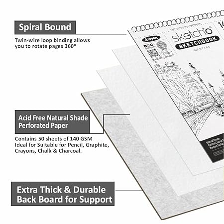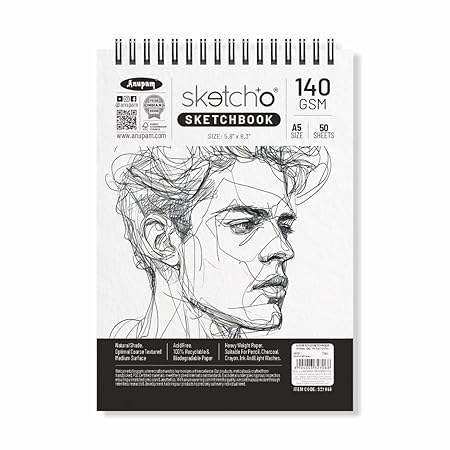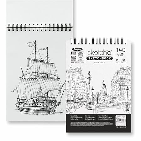 - PREMIUM & DURABLE MATERIAL : Anupam sketchO sketch book 140gsm strong toughness and durability of this sketching paper pad allows for erasing without damaging paper surface, so it can stand up to multiple drawings without warping. This spiral drawing book can be used for sketching, painting and writing