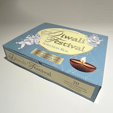 - Bring light, colour, and blessings into your home with the Diwali Festival Selection Box. This beautifully curated collection includes 20 handcrafted greeting cards; each designed with vibrant artwork and traditional motifs that capture the spirit of the Festival of Lights.