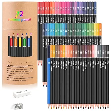 • Color Pencils: 72 pack vibrant color pencils,1 sketch pencils,1 eraser,1 sharpener,1 pencil eco-friendly tube.