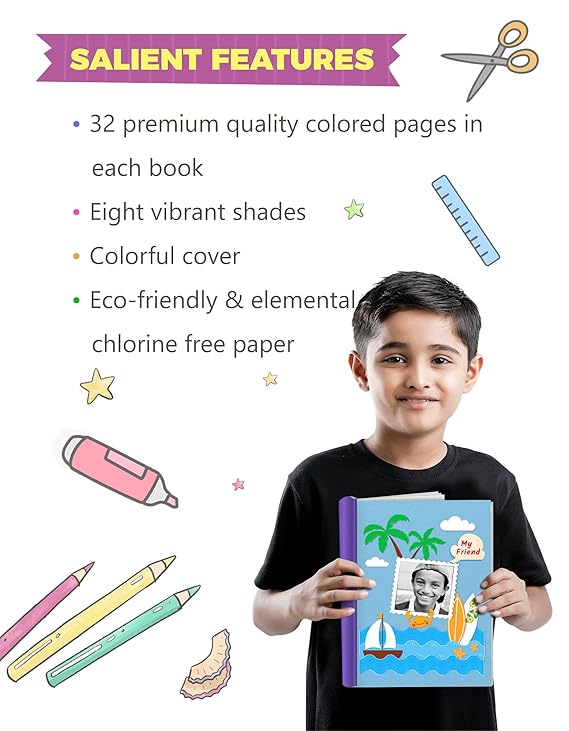 Scrapbook for Kids | Soft Bound | A4 Size Approx | 32 Multi Colour Pages